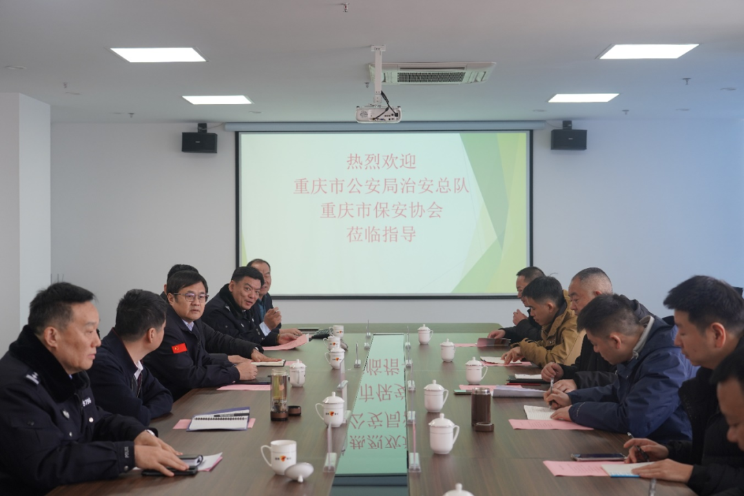 近日,重慶市保安協(xié)會(huì)會(huì)長(zhǎng)李永成、重慶市公安局治安總隊(duì)保安監(jiān)管大隊(duì)副大隊(duì)長(zhǎng)安硯坤一行6人,在山東省公安廳治安總隊(duì)二級(jí)高級(jí)警長(zhǎng)高懷仕、山東省保安協(xié)會(huì)副秘書長(zhǎng)趙愛(ài)民陪同下,到淄博市保安服務(wù)公司調(diào)研并進(jìn)行座談交流。淄博市公安局治安支隊(duì)副支隊(duì)長(zhǎng)、四級(jí)高級(jí)警長(zhǎng)孫元乾,淄博市保安協(xié)會(huì)會(huì)長(zhǎng)、淄博市保安服務(wù)有限公司黨委書記、董事長(zhǎng)付志欣陪同考察。