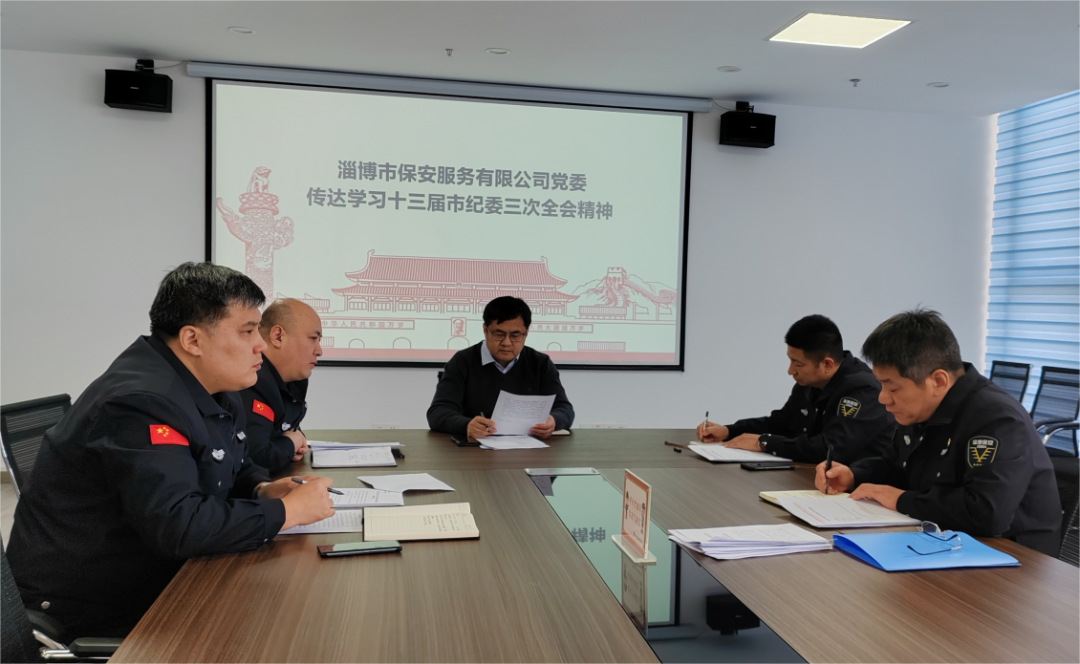 近期,市保安公司召開黨委會(huì)議,傳達(dá)學(xué)習(xí)十三屆市紀(jì)委三次全會(huì)精神。公司黨委書記、董事長付志欣同志主持會(huì)議并講話,班子成員參加會(huì)議。