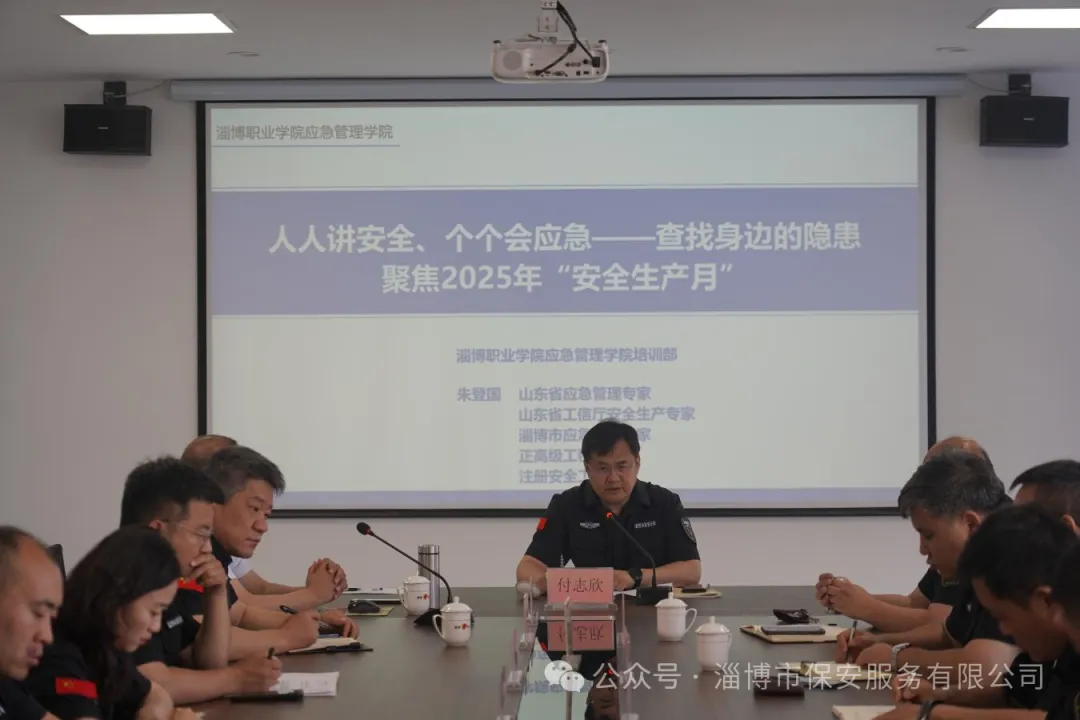 為深入貫徹市國(guó)資委“安全生產(chǎn)月”活動(dòng)要求,6月4日,市保安公司聚焦“人人講安全、個(gè)個(gè)會(huì)應(yīng)急——查找身邊的隱患”,邀請(qǐng)山東省應(yīng)急管理專(zhuān)家、正高級(jí)工程師,山東齊安檢測(cè)技術(shù)有限公司安全技術(shù)部經(jīng)理朱登國(guó)進(jìn)行專(zhuān)題授課,市保安公司黨委書(shū)記、董事長(zhǎng)付志欣主持,公司黨委委員,各部室、中心、子公司,各大隊(duì)負(fù)責(zé)人及安全分管領(lǐng)導(dǎo)參會(huì)。