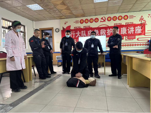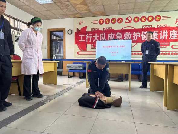 為進(jìn)一步提高基層員工面對(duì)突發(fā)疾病的應(yīng)急處置能力,近日,金融護(hù)衛(wèi)中心工行大隊(duì)特邀湖田中心醫(yī)院醫(yī)生,在大隊(duì)駐地開展應(yīng)急救護(hù)健康講座。 講座現(xiàn)場(chǎng),醫(yī)生認(rèn)真細(xì)致地講解了心肺復(fù)蘇的基本流程和步驟,并對(duì)徒手心肺復(fù)蘇操作要領(lǐng)進(jìn)行了重點(diǎn)說明。隨后現(xiàn)場(chǎng)演示了胸外心臟按壓、清理口腔異物、開放氣道、人工呼吸,并對(duì)心肺復(fù)蘇按壓深度、按壓頻率等重點(diǎn)環(huán)節(jié)的操作要領(lǐng)和流程逐一進(jìn)行講解和示范。隊(duì)員們積極參與,現(xiàn)場(chǎng)體驗(yàn)徒手心肺復(fù)蘇操作,確保此次活動(dòng)取得實(shí)效。 工行大隊(duì)將持續(xù)深化關(guān)心關(guān)愛基層職工工作,不斷提升職工應(yīng)對(duì)突發(fā)緊急事件的自救和處置能力,增強(qiáng)職工的獲得感、幸福感。