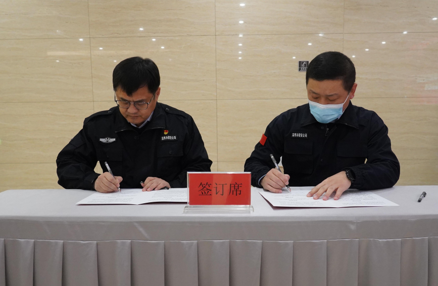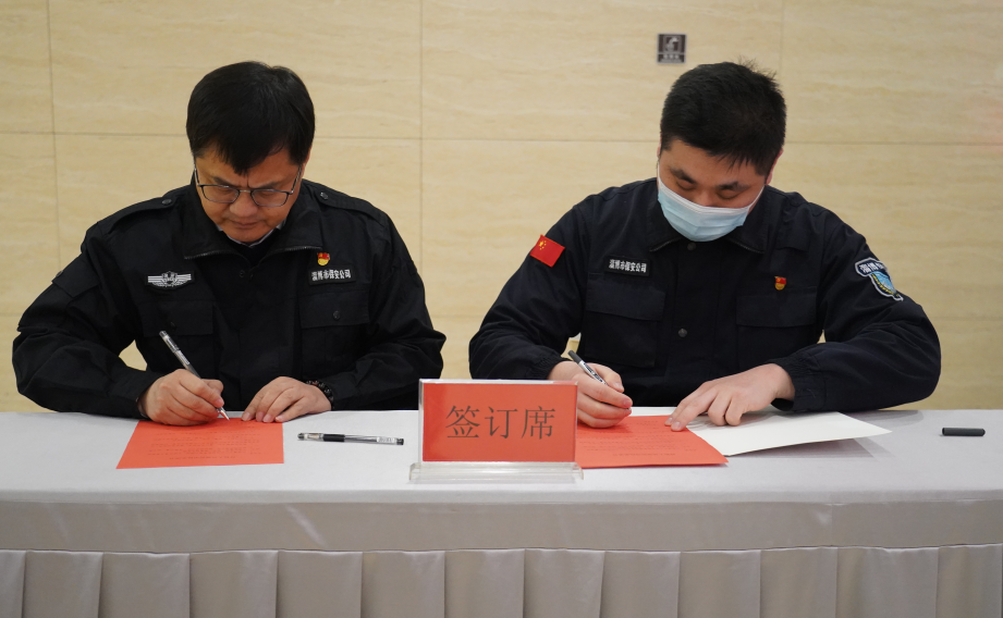 黨委書記、董事長付志欣同志與中層代表簽訂2023年度黨風廉政建設(shè)目標責任書、2023年度安全生產(chǎn)目標責任書,與押運隊員代表簽訂持槍人員規(guī)范用槍承諾書。