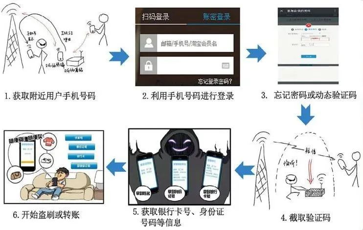 在公眾的印象中,“隔空取物”一般出現(xiàn)在魔術(shù)表演節(jié)目或仙俠小說的橋段中。其實(shí),此類無觸式隔空盜刷現(xiàn)身于世的時間并不長,屬于新型電信詐騙案件,其工作原理說起來也并不復(fù)雜。我們?nèi)粘J褂玫脑S多App登錄及操作,都可以通過手機(jī)號碼加短信驗(yàn)證碼的方式實(shí)現(xiàn),而手機(jī)號碼和短信內(nèi)容可以通過專用電子設(shè)備來獲取。即,作案人員首先使用偵碼設(shè)備獲取一定范圍內(nèi)用戶的手機(jī)號碼和短信內(nèi)容,然后利用獲取的手機(jī)號登錄支付平臺,再用嗅探設(shè)備獲取手機(jī)驗(yàn)證碼,最后登錄平臺操控用戶資金賬戶進(jìn)行轉(zhuǎn)賬或消費(fèi)。