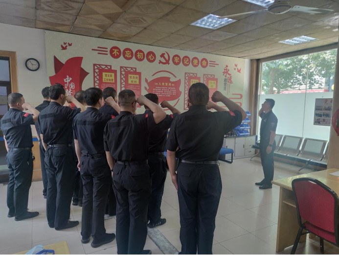 為喜迎中國共產(chǎn)黨建黨102周年,充分展現(xiàn)我黨的光輝歷程,同時(shí)激勵(lì)黨員群眾踐初心、強(qiáng)黨性、砥礪奮進(jìn),切實(shí)增強(qiáng)基層黨組織的凝聚力、戰(zhàn)斗力,充分發(fā)揮戰(zhàn)斗堡壘作用。在金融護(hù)衛(wèi)中心工行大隊(duì)黨支部精心安排部署下,全體黨員同志在紅色活動(dòng)的氛圍中重溫時(shí)代經(jīng)典,回顧百年風(fēng)華,為黨獻(xiàn)上美好祝愿。一、重溫誓詞憶初心 實(shí)際行動(dòng)顯忠誠“我志愿加入中國共產(chǎn)黨,擁護(hù)黨的綱領(lǐng),遵守黨的章程,履行黨員義務(wù),執(zhí)行黨的決定......”在鮮紅的黨旗下,金融護(hù)衛(wèi)中心工行大隊(duì)全體黨員莊嚴(yán)地舉起右手,握拳宣誓,每一句都是全新的心靈洗禮,憶初心,銘記莊嚴(yán)的承諾,牢記共產(chǎn)黨的政治責(zé)任、工作擔(dān)當(dāng)和光榮使命,以實(shí)際行動(dòng)恪守對(duì)黨的忠誠,以積極進(jìn)取的心態(tài)踐行入黨誓詞,為譜寫保安公司高質(zhì)量發(fā)展新篇章作出積極貢獻(xiàn)。